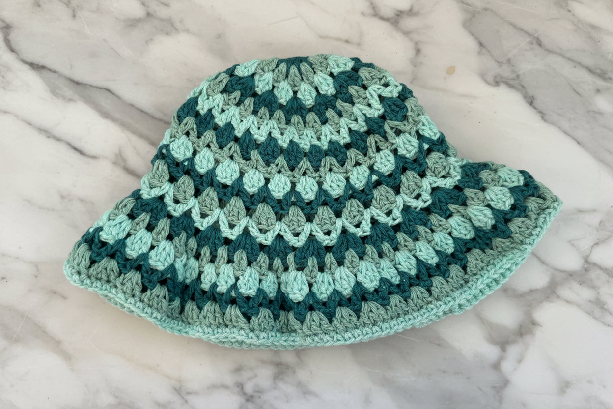 The Kelp bøttehatt er heklet i 100% bomull.