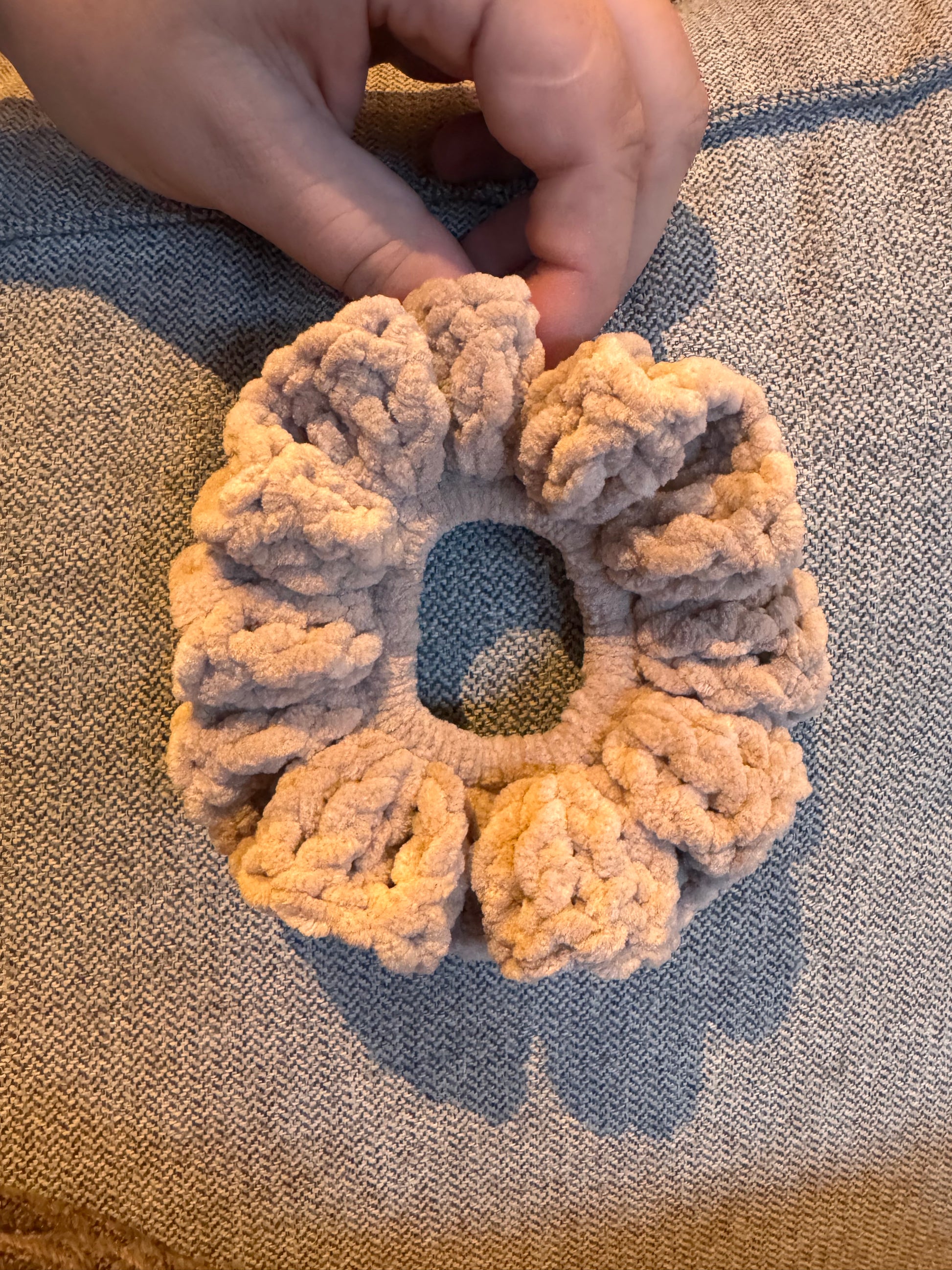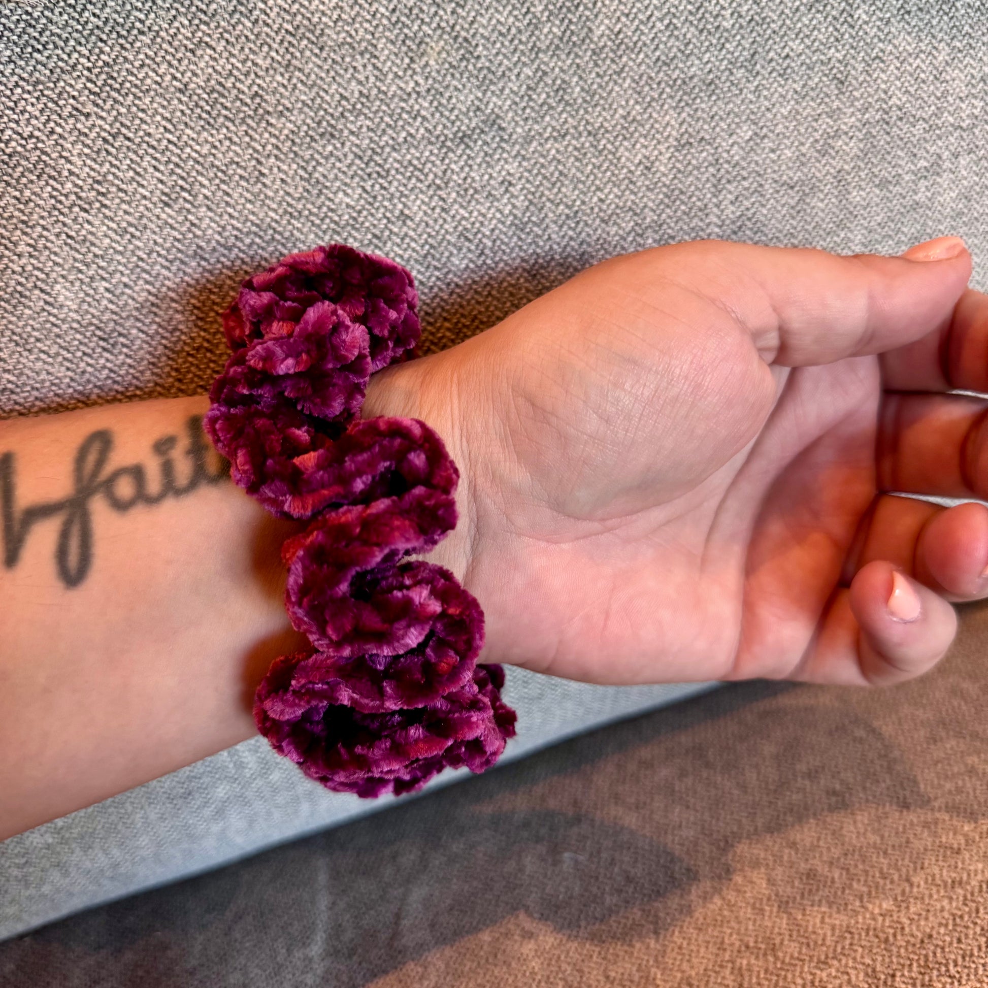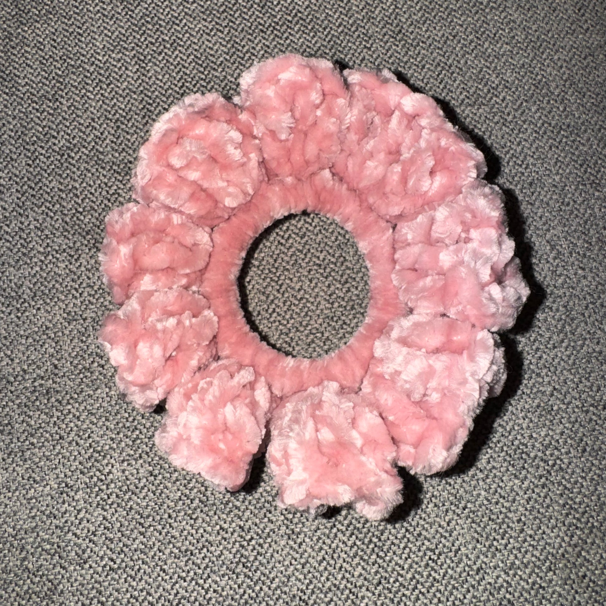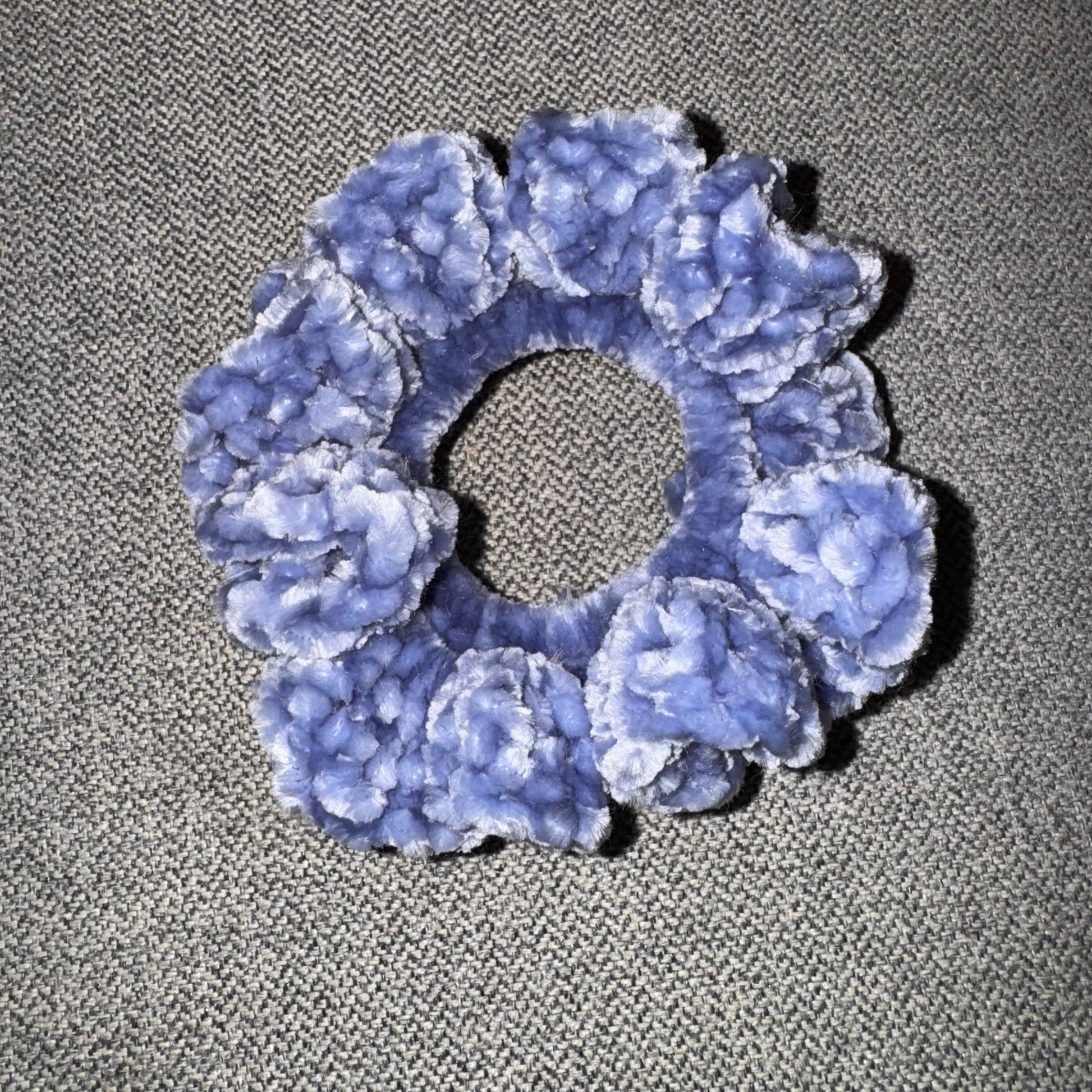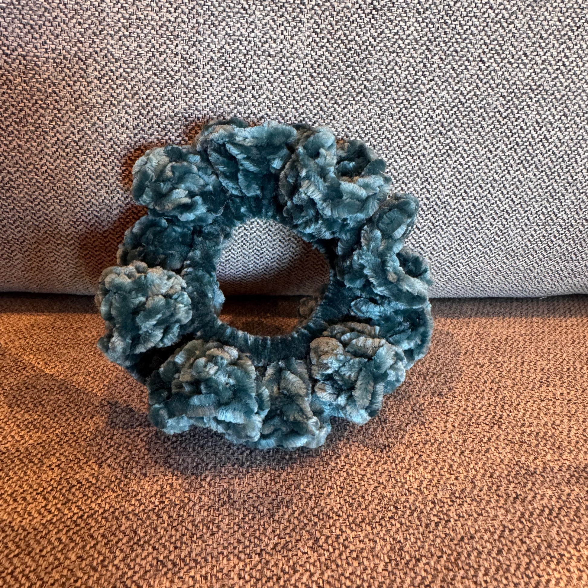 Deilige, freshe heklede scrunchies i velurstoff/chenille som gir ekstra løft til hestehalen, i tillegg til at den ser nydelig ut og sliter mindre på håret enn en vanlig strikk pågrunn av veluren