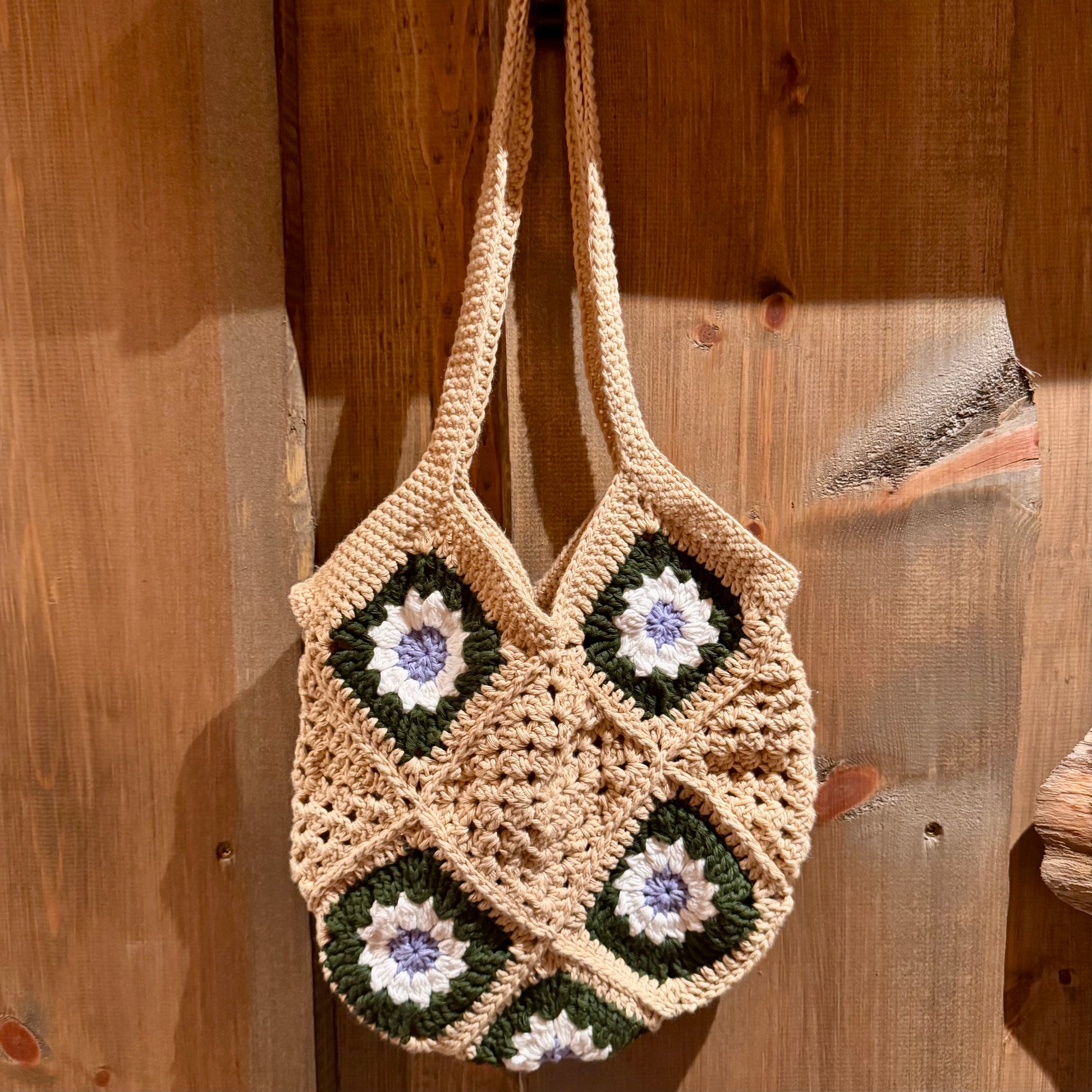 Daisy veske heklet med grannysquares i 100% bomull!🌸