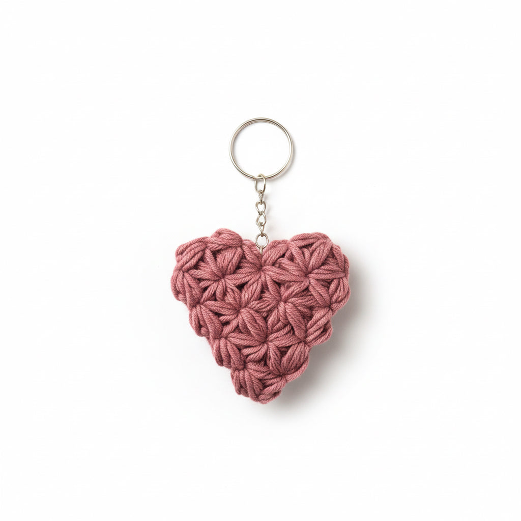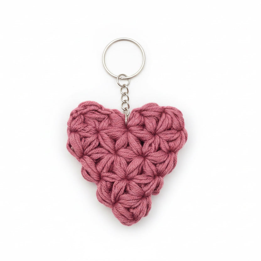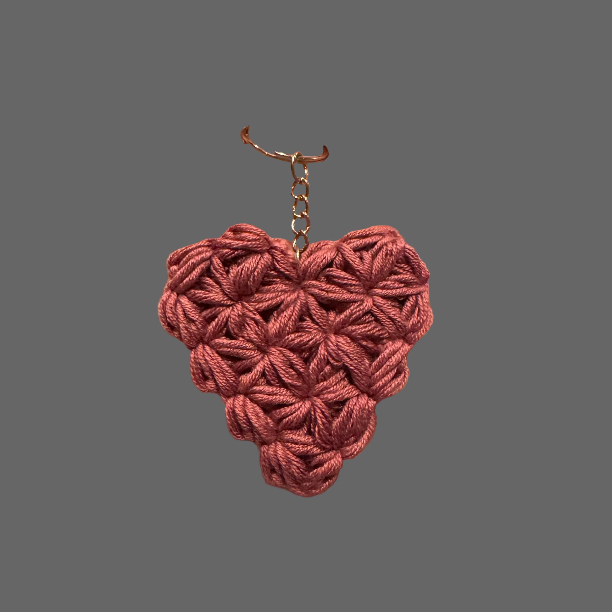 Heklet jasminhjerte nøkkelring/charm til å pynte nøkkel, sekk, bag eller veske❤️