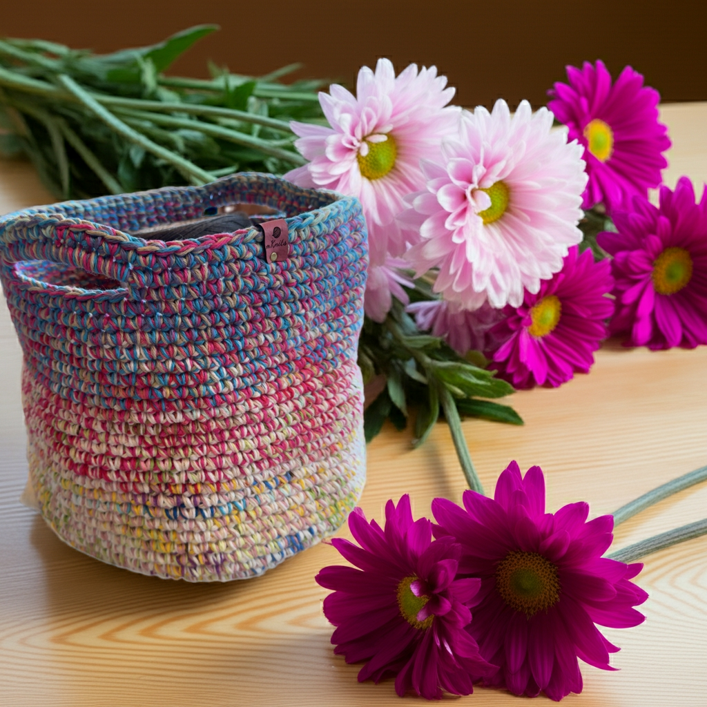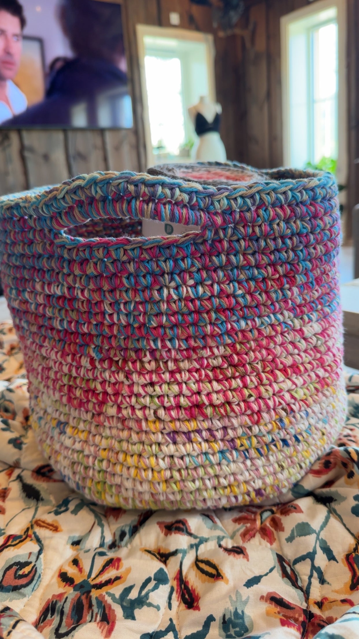 Disse kurvene er laget av restegarn, i 100% bomull.